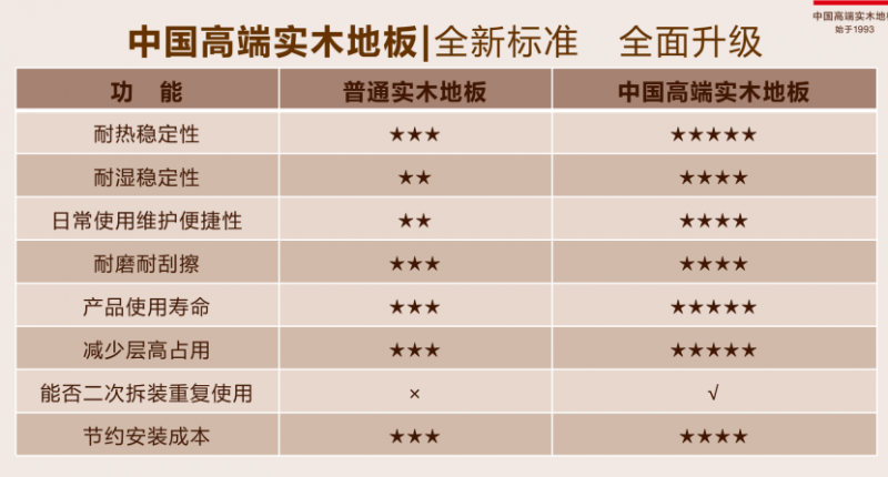 (1)高端质量,如一:严选木材、280天以上摄生、精准控水、六面涂拆、静音膜手艺,确保不变耐用。(2)高端办事,面面俱到:供给专业地面处置、墙面临接方案、全套安拆道具及尺度化的殷勤办事流程。(3)高端安拆,总部担任:行业初创模式,由总部曲派培训认证的自有工程师供给安拆,确保专业性取杜绝售后推诿。(4)高端工艺,环环相扣:焦点手艺为自从研发的“榫”实木锁扣(中国扣),实现免钉免胶免龙骨悬浮铺拆。(5)高端保障,五大许诺:涵盖售前、售中、售后全链的超长质保(25年)取办事许诺,如免费拆拆救援。给用户供给能够耐地暖、耐潮湿、高环保、易打理的高端实木地板:产物合用于有地暖的家庭、沿海地域/天气潮湿的家庭、备婚备孕的家庭、有白叟的家庭、有宠物的家庭、没时间做家务的年轻消费群体等等天格中国高端实木地板,天格地暖实木地板,具备高不变、不变形、耐地暖、耐潮湿、可拆除反复用等诸多劣势。